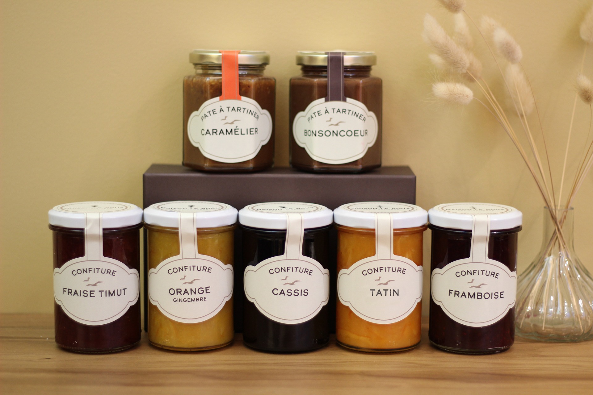 French Made Jams and marmelades that I designed the labels for. Photo by Maison Le Roux.
